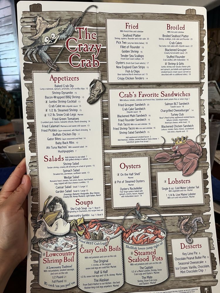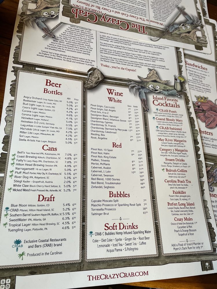 Introducing The Crazy Crab - Harbour Town, a seafood haven located in Hilton Head Island, SC. This casual and touristy spot offers a variety of appetizers like the Ahi Tuna Nachos and Bacon Wrapped BBQ Shrimp, as well as salads and soups such as the Shrimp Salad and She Crab Soup. Customers rave about the generous portions and attentive service, with standout dishes like the Crab leg boil and Oysters Rockefeller garnering high praise. The nautical-themed ambiance, waterfront views, and complimentary hush puppies add to the overall dining experience. With a menu that includes seafood platters, grilled salmon with bourbon teriyaki sauce, and shrimp & grits, The Crazy Crab - Harbour Town promises a delightful dining experience for seafood lovers. Don't miss out on trying their key lime pie for a sweet finish to your meal.